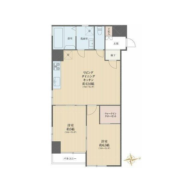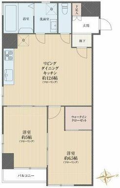 | 間取り(内訳) | 2LDK(LDK12.6、洋6.5、5) | ||
